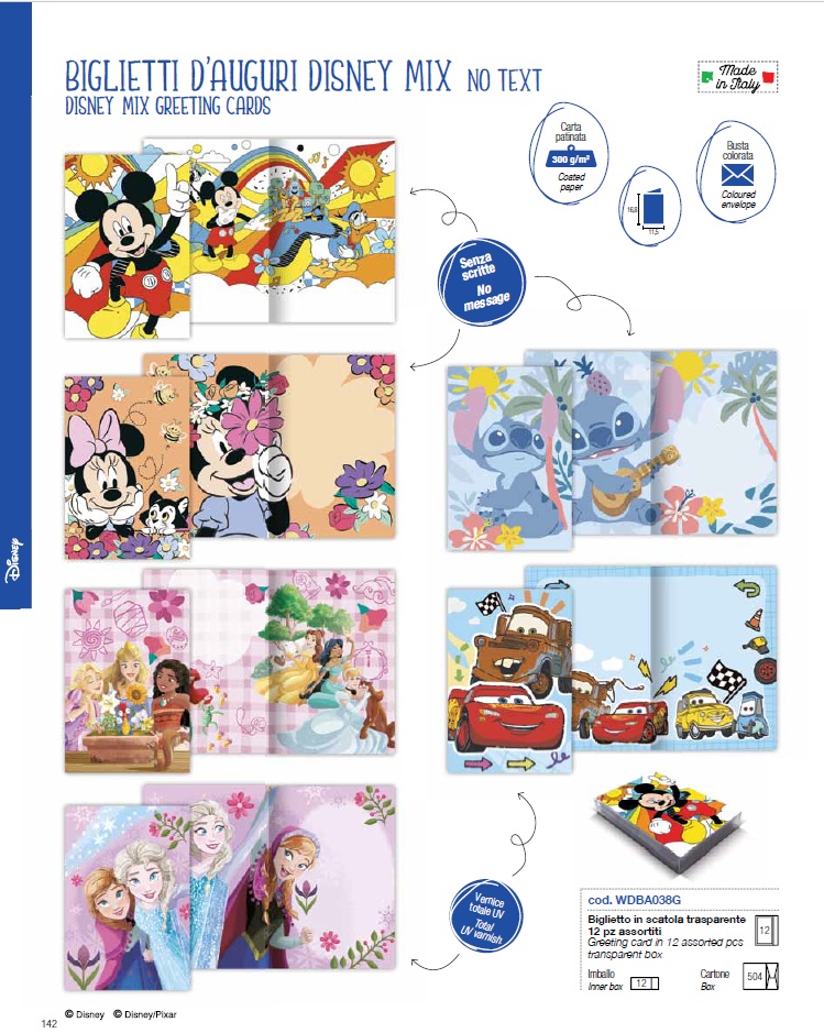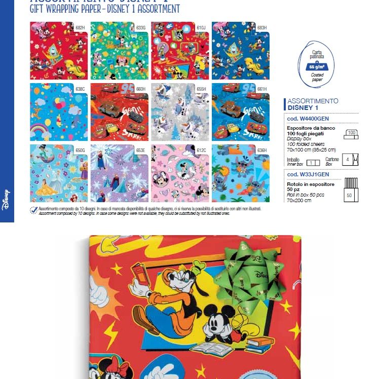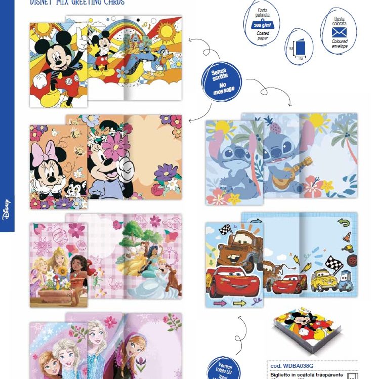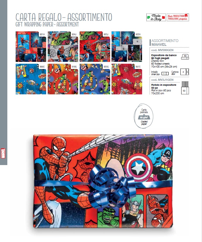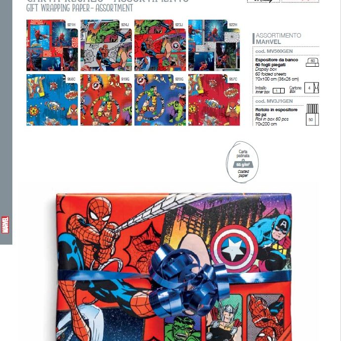 Las líneas Disney y Marvel introducen una nota lúdica y actual, con nuevos personajes y diseños cuidadosamente reinterpretados, aplicados a papeles de regalo, bolsas y tarjetas de felicitación que combinan emoción y calidad.