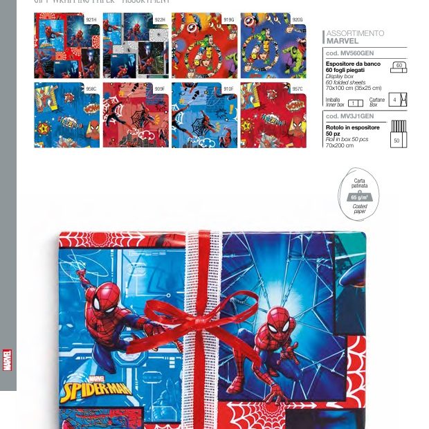 Por último te presentamos todos estos productos de papeles en rollitos, papel de mostrador, bolsas de papel en distintas calidades y gramajes y bolsas en textil en nuestras licencias de Disney y Marvel con diseños navideños.
