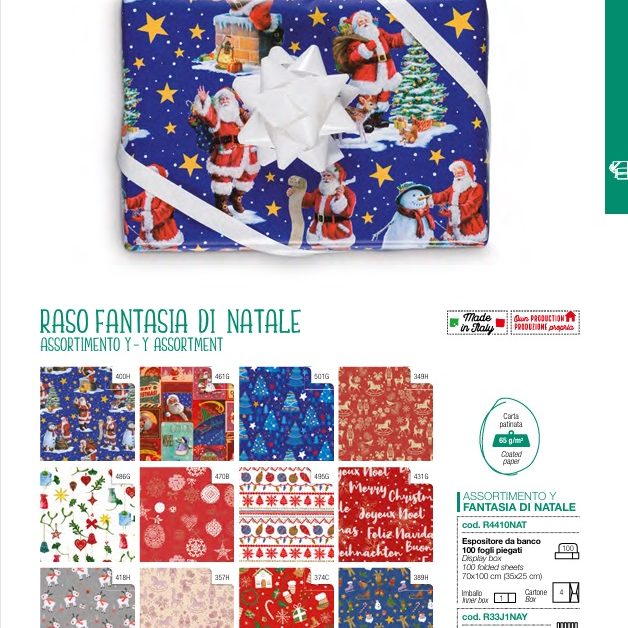 En él encontrarás surtidos de rollitos y pliegos de distintas calidades de papel, raso, Ecocarta, RexClub, Natura, Kraft, metalizado, siempre modificando algún diseño de los surtidos para estar a la última en diseños, presentado en nuestras cajas expositores de rollitos y/o cajas de pliegos.